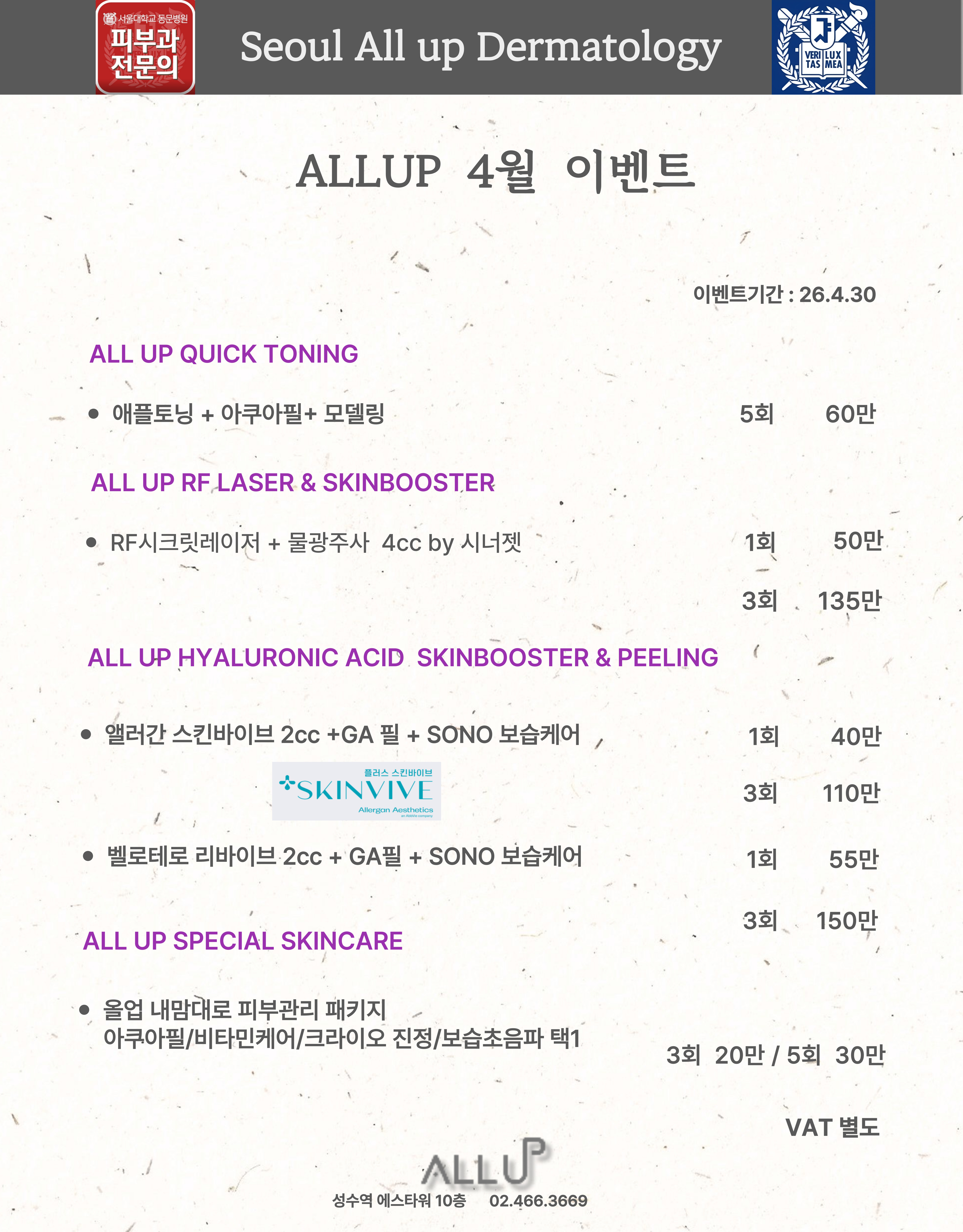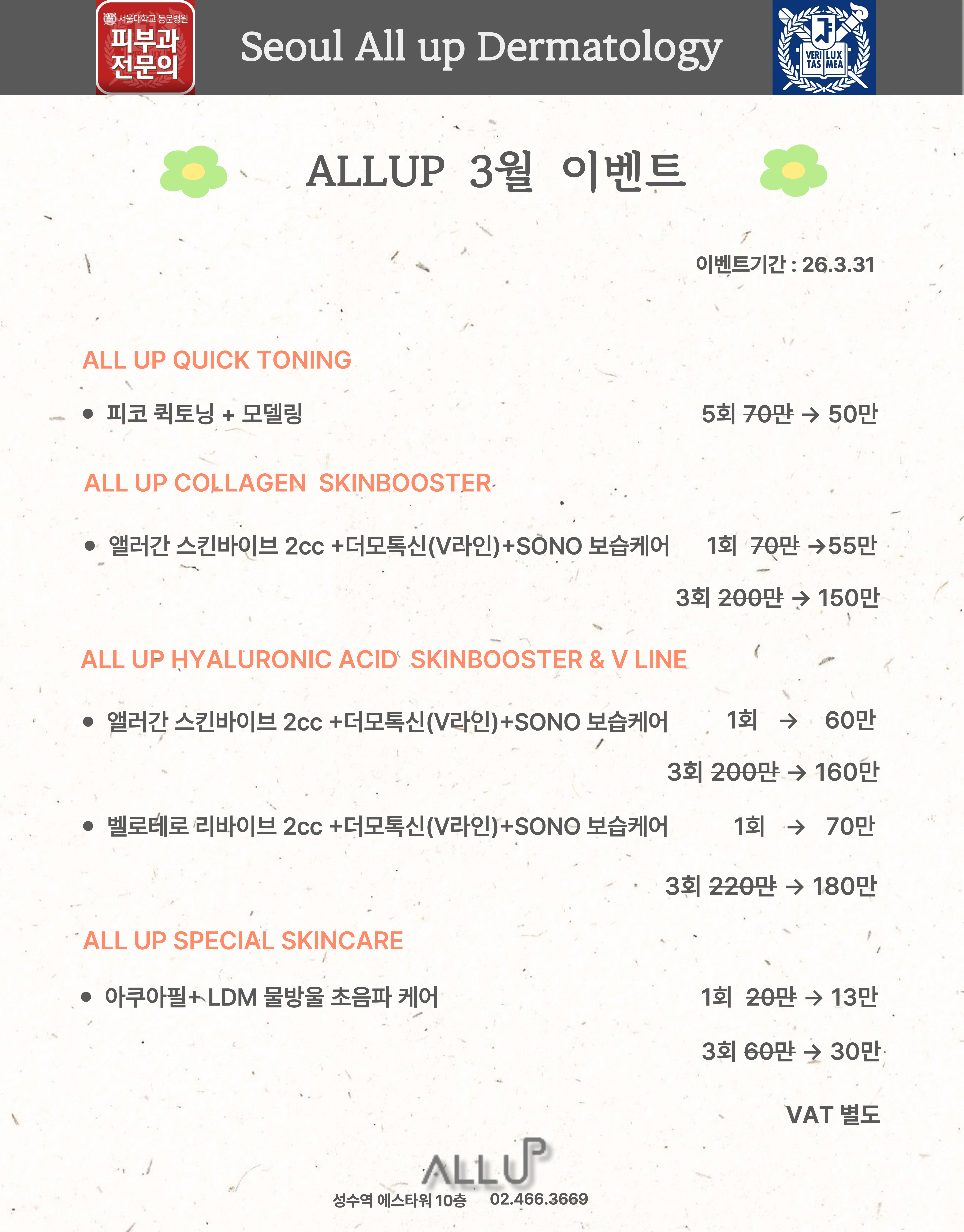 서울 Allup 피부과 오픈 이벤트